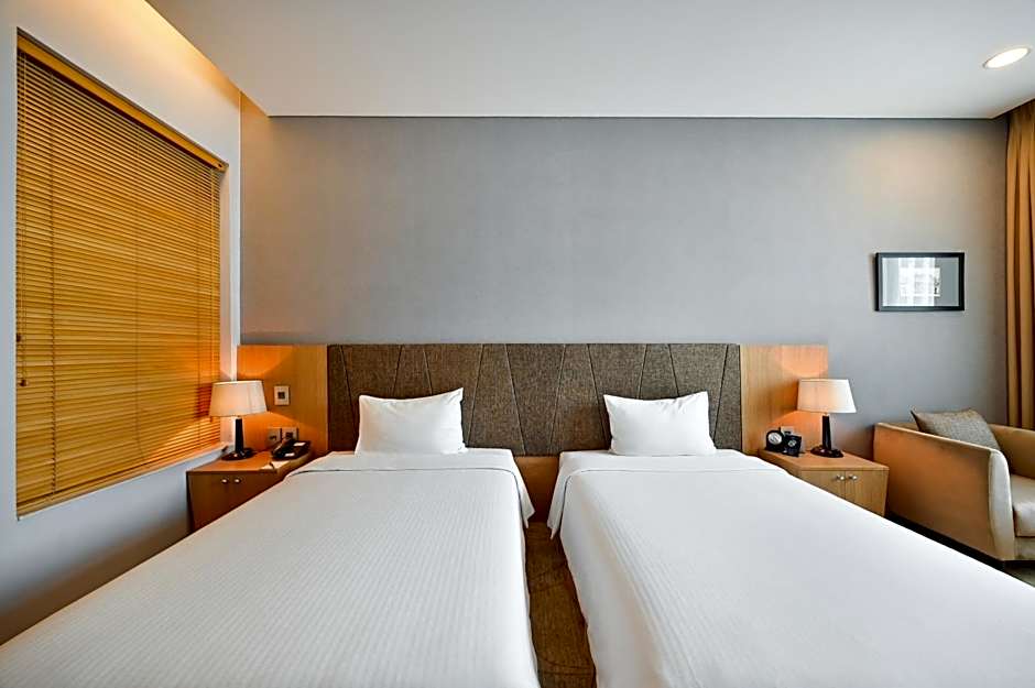 Offering free toiletries, this twin room includes a private bathroom with a shower, a hairdryer and slippers. The spacious air-conditioned twin room offers a flat-screen TV with cable channels, a mini-bar, a wardrobe, a safe deposit box as well as city views. The unit offers 2 beds.