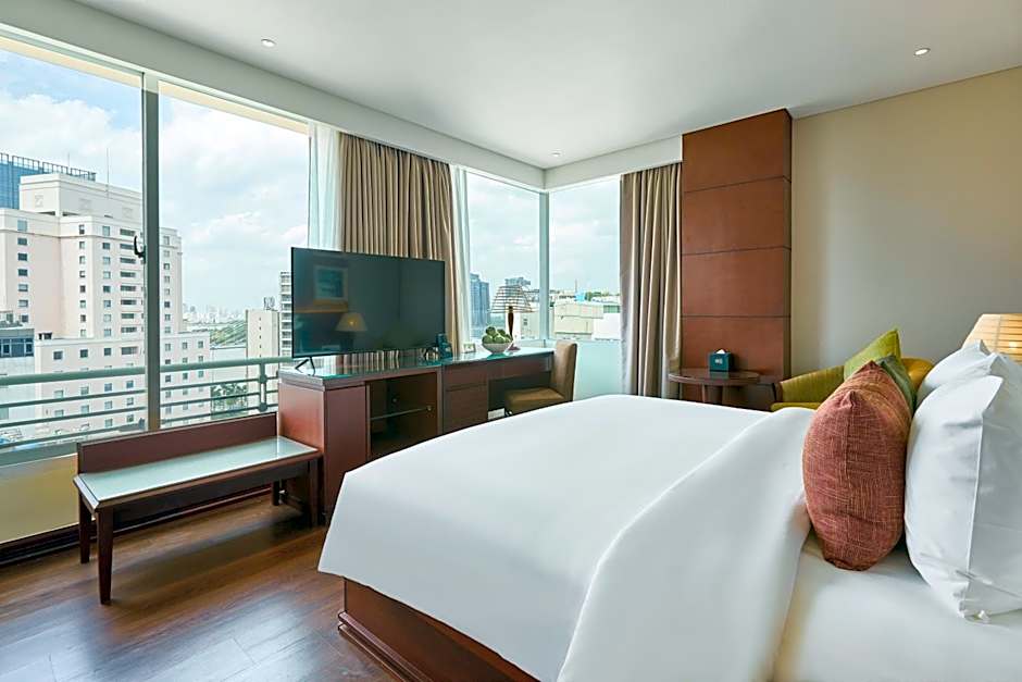 Relax by the rooftop outdoor pool, an adults-only retreat that crowns the building with sweeping city views. On-site dining options keep energy up between outings: MELODY serves Vietnamese cuisine, while LEGEN POOL BAR offers a relaxed spot to swing back with a drink.