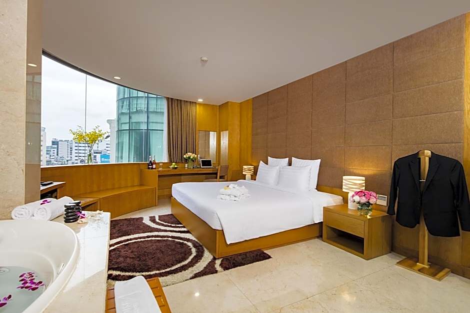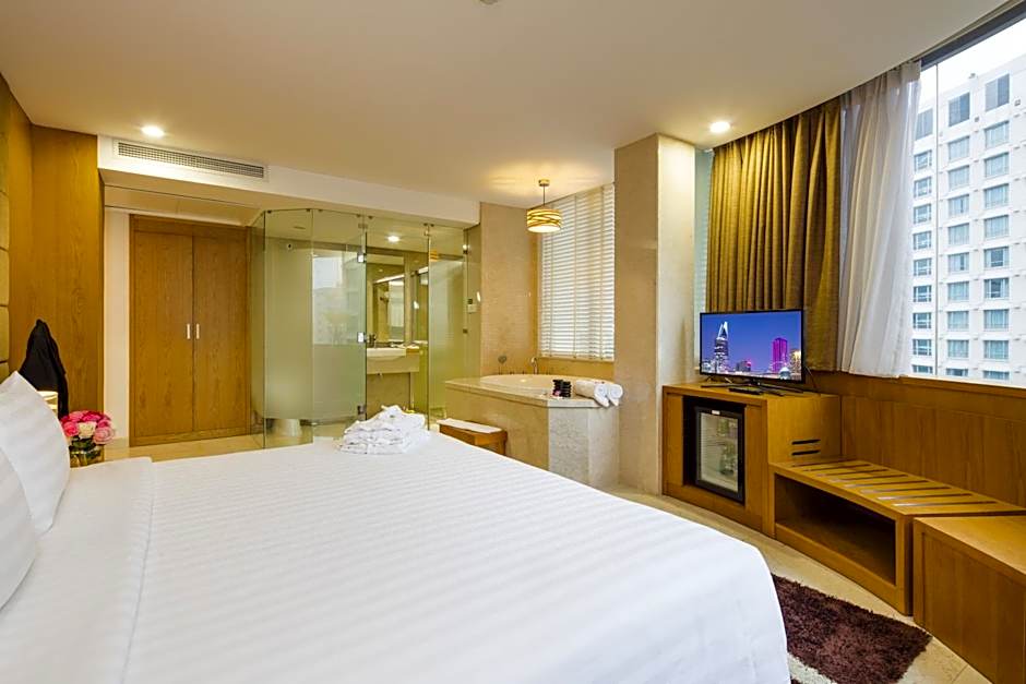 The Paradise Saigon Boutique Hotel & Spa offers various types of rooms. These include Deluxe Double or Twin rooms with a window, Premium Double Bathtub rooms with a window, Paradise Suites, Premium Deluxe Twin rooms with city views, Executive Suites with city views, Premium Deluxe Double rooms with city views, Signature Suites with a sun bath, and Executive Suites. All rooms are non-smoking and come with either a queen or king size bed. The rooms accommodate 2 adults and some can accommodate 1 child.