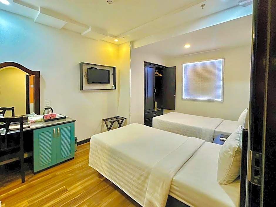 At Sunrise Central Hotel, guests can choose from various room types such as Premium Double Rooms with a Queen and Double bed, Premium Twin Rooms with two Twin beds, Deluxe Twin Rooms without windows, Family Rooms with two Queen beds, and Deluxe Double Rooms without windows featuring a Queen bed. Most rooms accommodate 2 adults and 1 child, except the Family Room which accommodates 4 adults and 2 children. Smoking is not allowed in any of the rooms.