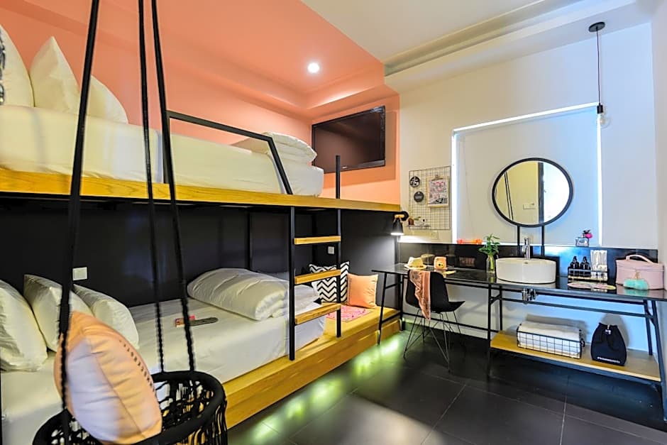 The Hammock Hotel Fine Arts Museum offers a variety of room types for guests. It includes Family rooms that can accommodate 3 adults and 1 child, Deluxe Twin and Cozy Twin rooms that can accommodate 2 adults and 1 child, and Deluxe Double and Cozy Double rooms that can also accommodate 2 adults and 1 child. All rooms do not allow smoking and have bed sizes ranging from bunk beds to queen size beds.