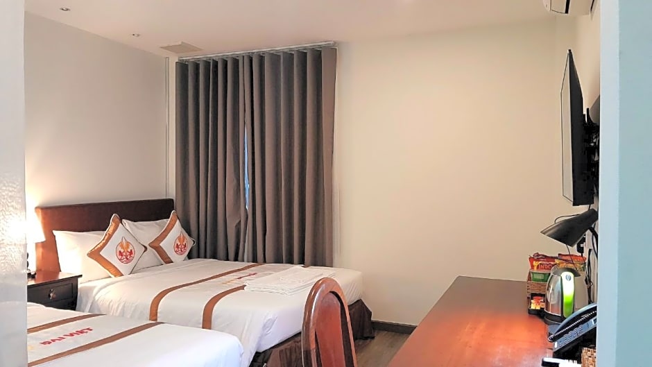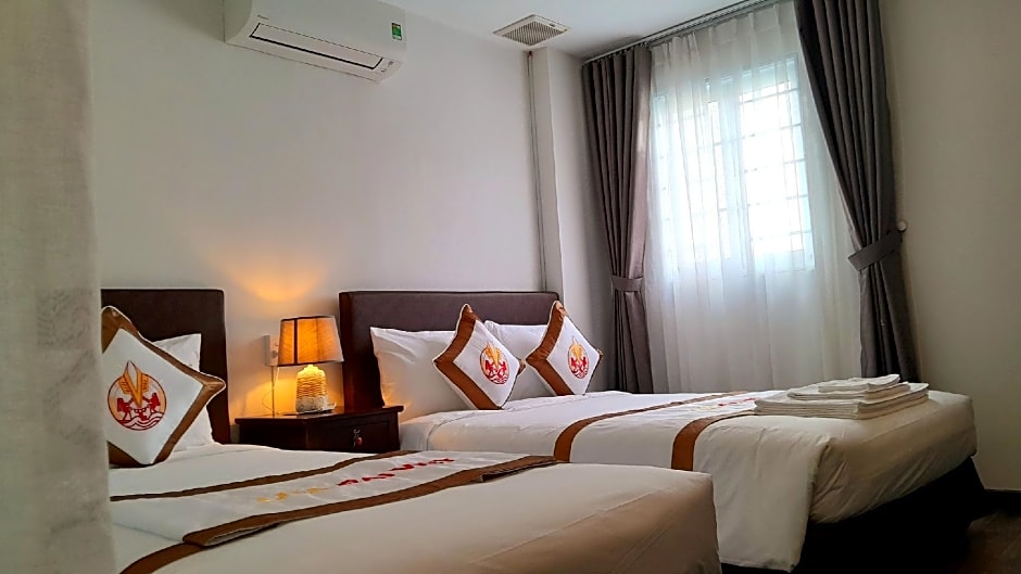 The staff is amazing and really helpful. We had a problem with the flight and we had to call the costumer service at midnight and they helped us with that. At check in they also upgrade us to a deluxe, a big room and clean. Breakfast was included in a nearby restaurant. It is really close to the most noisy road of Saigon, but in the room is fine, you don't hear anything.