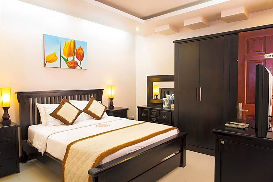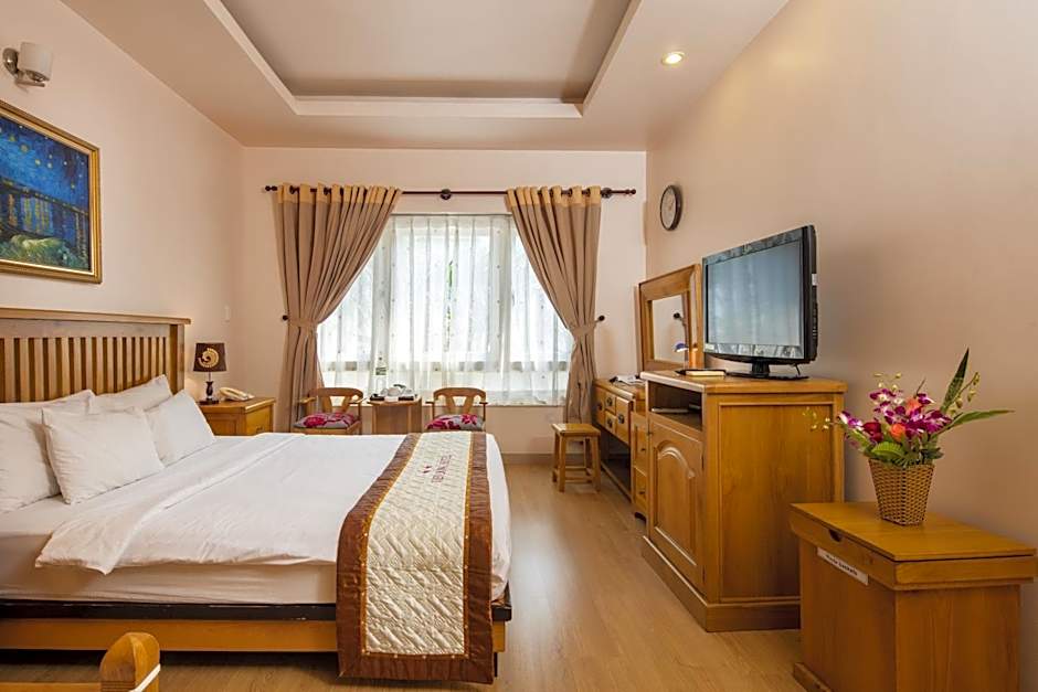 Terrace, patio, and balcony spaces invite sun-drenched moments, while soundproofing keeps evenings quiet. The 24-hour front desk helps with plans around Tan Phong Ward and the wider Ho Chi Minh City area, and a nearby golf course is listed for an extra fee for those looking to add a little sport to the stay.