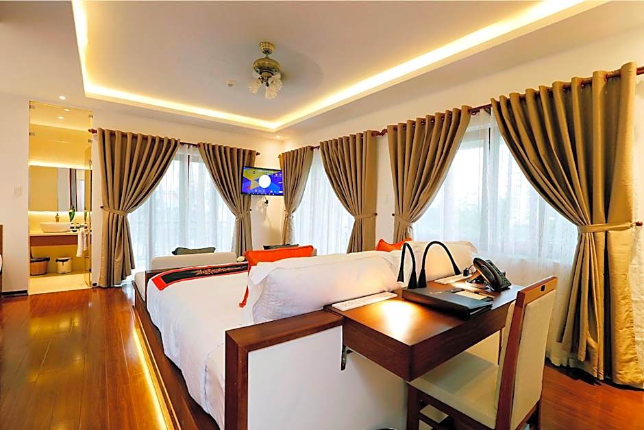 Dive into the refreshing outdoor swimming pool or lounge on the sun deck while sipping your favorite drink from the on-site bar. Stay connected with free Wi-Fi and enjoy room service in the comfort of your soundproof room, allowing you to unwind after a day of exploring. Fitness enthusiasts will love the complimentary access to the fitness center, and for those planning day trips, the hotel offers a tour desk to help you navigate all the must-see spots in Hoi An. Need assistance? The 24-hour front desk is at your service!