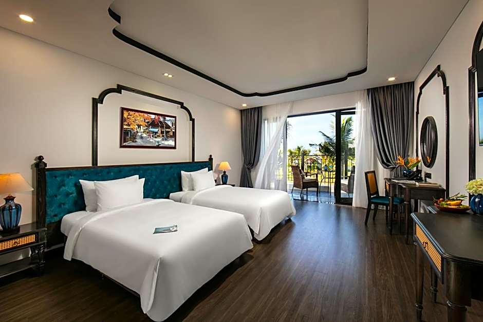 Address: Binh Minh Beach, Nam Hoi An, Quang Nam, Vietnam. The resort offers ocean views, non-smoking rooms, private entrance, and wheelchair accessibility, with options like a terrace, garden view, and more to enjoy during a relaxing stay near the coast of central Vietnam.
