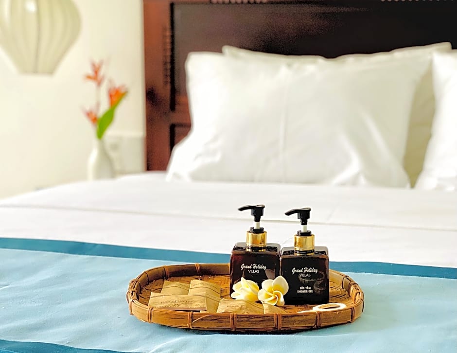 sits in Hoi An, Vietnam, just from the city center, at 42-44 Mac Dinh Chi. The property features an outdoor swimming pool, private parking free of charge, and complimentary WiFi, with on-site room service. Shuttle service (extra charge) and airport shuttle (extra charge) are available, along with air conditioning, a sun deck, a tour desk, and non-smoking rooms. Beach chairs and loungers line a garden with scenic views, while interiors offer a bathtub, free toiletries, a balcony, a bidet, and soundproofing.