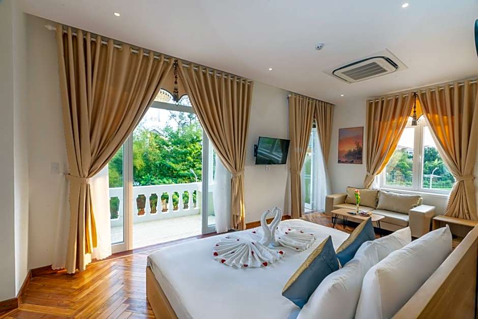 The hotel boasts soundproof rooms with modern comforts such as air conditioning, room service, and free toiletries. Guests can relax on the sun deck, dine in the on-site restaurant, or unwind with a drink at the bar while enjoying the lush garden views. Whether you're seeking a peaceful retreat or a family-friendly getaway, Hawal Boutique Villa Hoi An offers a memorable stay in the heart of Hoi An.