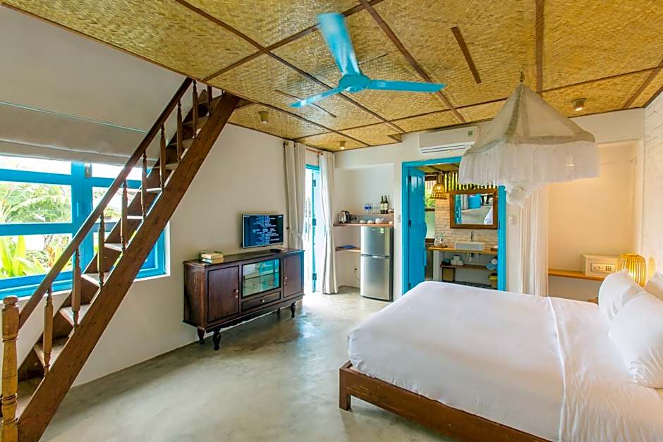 This place is amazing a little oasis of heaven! I almost don't want to write a glowing review because then everyone will know about it! I was with a friend & we treated ourselves to a 2 bed villa, spacious, beautiful, feels luxurious for the price. The pool is pretty small but the beach is 5 minutes away. If you stay here you can use the 'shore clubs' sunbeds on the beach without having to buy drinks etc, then again whilst almost triple the price (compared to back street An Bang), it's worth reclining on one of their giant double beds & chucking back a cocktail & stuffed clams to feel totally decadent & spoilt. The balcony we had was divine, huge, lots of comfy furniture, private with a little bamboo divider to separate us from the 2bed next door, & even an outside ceiling fan to help keep us cool & keep mozzies away! A decent sized fridge, air con & a ceiling fan indoors with mozzie nets provided.... The upstairs bathroom with real lillies growing out of one side was to die for! I will be returning!