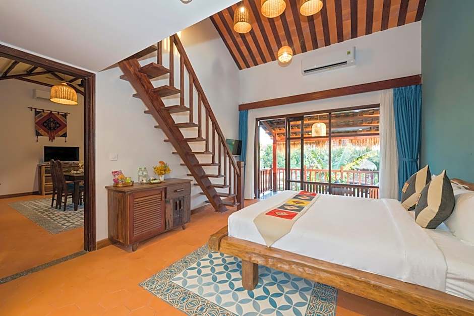 Zest Villas & Spa Hoi An offers a variety of rooms including Lakeside Bungalows, Family Duplex, Deluxe Double or Twin rooms with Garden View, Deluxe Twin rooms with Lake View, and Executive Suites. All rooms do not allow smoking and have different sizes and bed configurations to accommodate various occupancy needs, ranging from 2 adults and 1 child to 4 adults and 1 child.