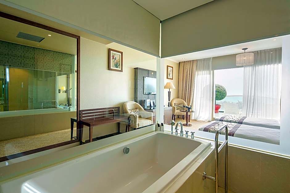 Room with Asian-inspired décor offers uninterrupted views of the East Sea and nearby islands,