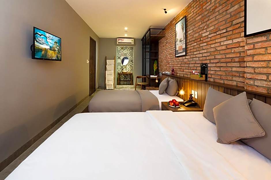 Marilyn Boutique Hotel Nha Trang offers a variety of rooms. They have double rooms with 1 King bed and windows, twin rooms with 2 single beds and windows, and studio rooms with 1 King bed and a balcony or mountain view. They also have triple rooms with a combination of 1 single bed and 1 King/Queen bed, and quadruple rooms with 2 King beds. All rooms are non-smoking. The rooms have different sizes ranging from 215 sqft to 291 sqft and can accommodate 2-4 adults and 0-2 children.