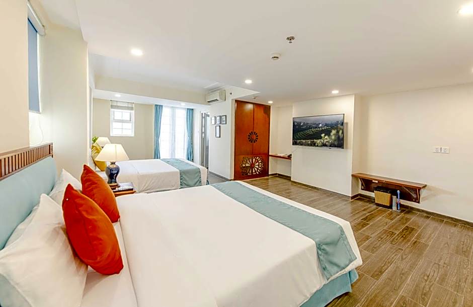 Good hotel and staff, but there were some problems, as I will describe below. The hotel is very conveniently located. It stands in a small, quiet dead-end street with almost no traffic. At the same time, it is only a few minutes’ walk to the beach and the sea, and some rooms have a sea view. Another advantage is that in less than a one-minute walk you can find several cafes with good food, shops, laundries, and spa and massage salons. Also, this place is almost in the center of the European Quarter, five minutes from the Night Market and Lotus Tower. The hotel itself is not large but quite comfortable. The room met our expectations and looked like the photos. It was clean, with good beds and bedding. Cleaning and changing towels and sheets happened regularly. The quality was not perfect but still good. Every day we found a couple of bottles of drinking water, and other supplies were refreshed. The soundproofing was quite good—noise from other rooms did not bother us much, and street noise was not a problem either. For a city hotel, our room was rather quiet. The air conditioner was good, an inverter type—effective and silent. Our room had two balconies. On one, the outdoor AC unit helped dry our swimsuits with its warm air. On the other balcony, we spent time enjoying the sea, the promenade, and the beach, and sometimes watched concerts held in the square by Lotus Tower. The staff were friendly, attentive, and always ready to help, which was very nice! I visited the pool on the 7th floor a couple of times. It is small, but you can splash around. It was pleasant to refresh myself there after sleeping. Overall impressions of the hotel are positive. If I come to Nha Trang again, I will very likely try to stay at the same hotel. Best wishes to your hotel and your team! Thank you!