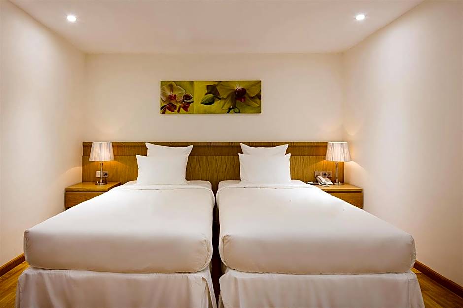 This larger air-conditioned twin room features a private balcony that opens up to views of the city. It is fitted with a flat-screen satellite TV and a desk. The private bathroom includes a hairdryer and free toiletries.