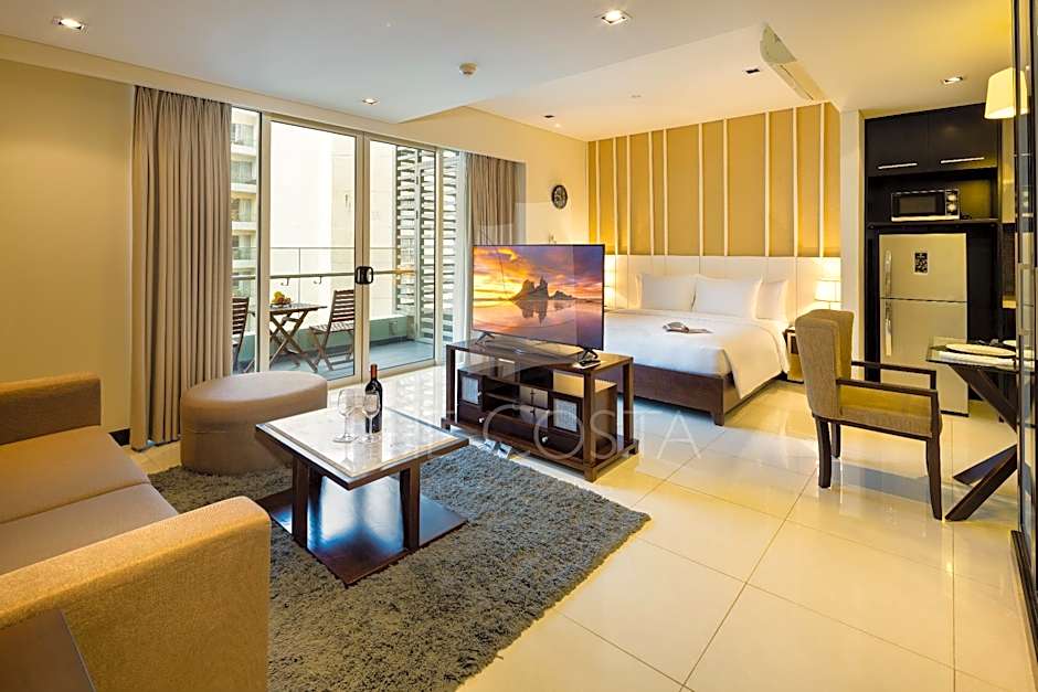 This is in the same building as the Intercontinental residences and next door to the Intercontinental Hotel - both of which are significantly more expensive. Big rooms with everything you need - very comfy - could stay here for a long time if required. Location is great 50m to shopping mall for example and right on the beach. This is great value for what you get and a high standard of rooms.