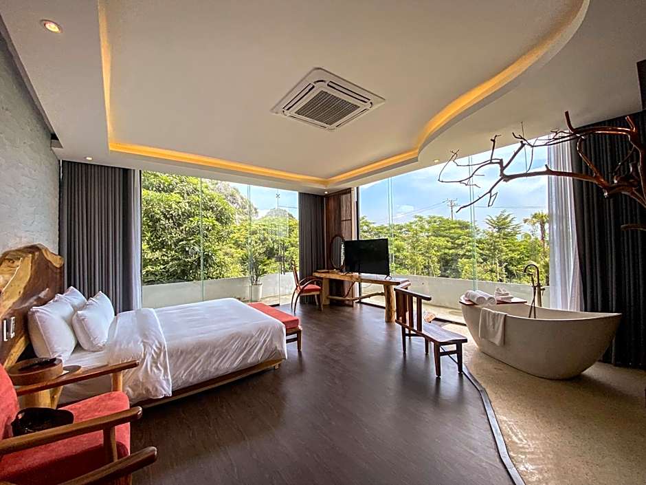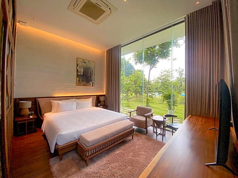 Nestled in the charming countryside of Ninh Binh, the Minawa Kenhga Resort & Spa offers a luxurious escape just 11.8mi from the vibrant city center. This five-star haven welcomes you with its gleaming private pools, an outdoor swimming paradise, and inviting kids’ pools—perfect for splashing around with family. Start your day with a hearty breakfast at the on-site restaurant, then unwind in style with spa services, a sauna, or simply lounge by the terrace enjoying the peaceful garden setting.