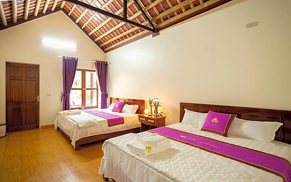 We arrived at Ruby Homestay after a stay in busy Hanoi, and it was exactly what we needed—peaceful, quiet, and relaxing. There were only a few other guests, so the atmosphere was calm and very personal. The staff were incredibly helpful from the start. They gave us suggestions on what to do in the area and organized a couple of great tours for us: an evening jeep ride and a full-day excursion with a knowledgeable guide who shared stories about local history, Buddhism, and more. Breakfast at the homestay was simple but delicious and filling. There’s also an on-site café/bar and a swimming pool, which added to the relaxing vibe. Our bungalow-style room exceeded expectations—it was clean, spacious, and had the biggest bed we’ve ever slept in! It felt cozy yet luxurious. Highly recommended for anyone looking for great service, a peaceful setting, and a beautiful place to unwind.