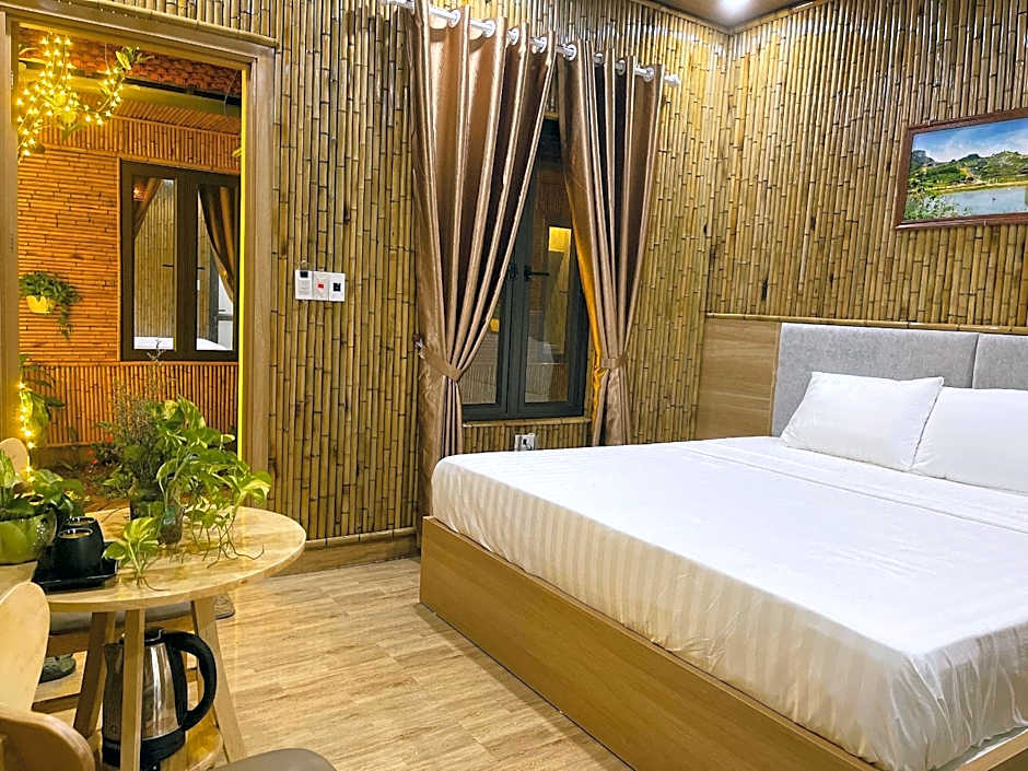 The place is nice and clean. The rooms are big. Internet works good. They rent bikes (60.000VND) and motorbikes for 125.000 VND. Breakfast is good. Is a family business and although they don’t speak any English they are eager to help (you will need google translate). The neighborhood is quiet and with a nice local vibe, just 25 minutes walking to the town. They have a small restaurant, you can eat there tasty and cheap. Very good value for money. Recommended