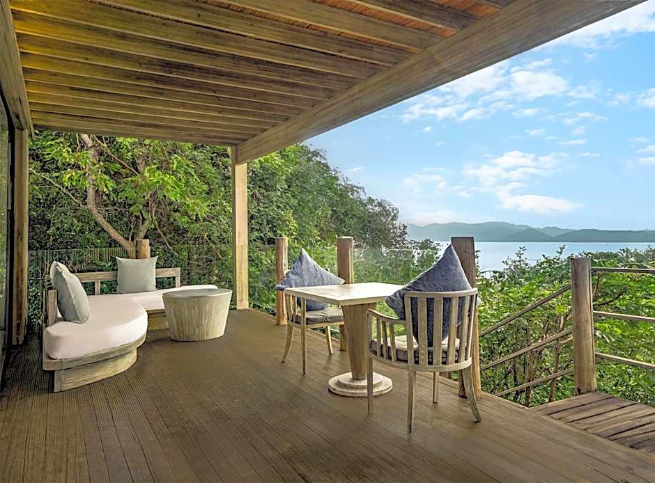 This treetop villa has a private balcony and terrace opens up to views of the sea and mountains. Featuring an outdoor swimming pool and sun loungers, this villa is furnished with a separate indoor and outdoor seating area, where guests can leisurely enjoy cups of coffee or tea. An private bathroom is fitted with bathtub, hairdryer and free toiletries. Bathroom and slippers are available for your comfort. Benefits include: - Complimentary daily mini-bar
