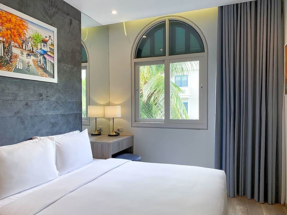 Great location, just 2min from the fantastic and clean beach and pool area, delicious menu options in the restaurant, excellent wifi both in room and lobby (we did remote work with video calls the entire time). At the beach you can order drinks from the Sailing club. Very comfortable bed, clean room and bathroom. Also good overall location on the island, as you can take a reasonable 10-20min Grab taxi to either side of the island (Sunset town and cable car, Vinpearl zoo and amusement park, airport).