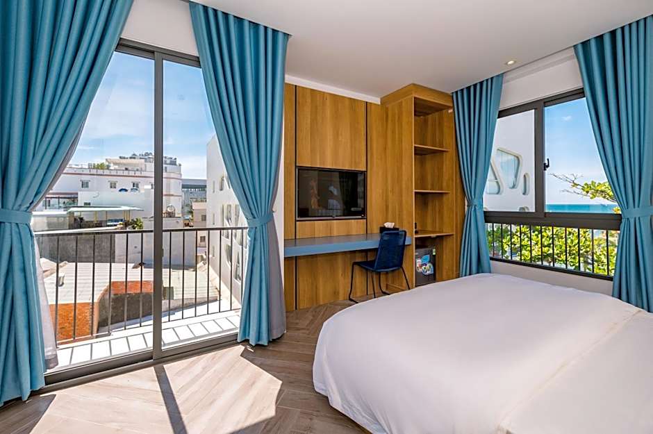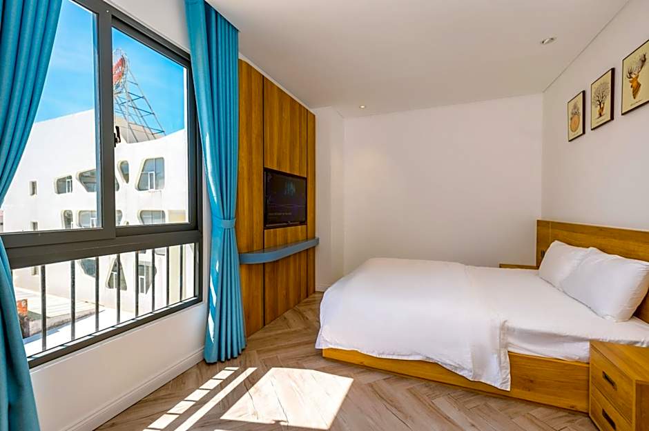 Room with sea view and over looking the Seashells Hotel as mine has a terrace where it is connected by the side door and you can sip coffee and enjoy the sea breeze. It is an alternative to the 5 stars hotel but at a fraction of the price. The bed is the king size not queen as it is not stated anywhere neither is the inaccurate picture shown. Like the staff Miss Lin Bi Quan who is always friendly and helpful to answer any queries. There is a lift provided. Location is good about 200 meters to night market and near to Dinh Cau Temple where the scenery is really beautiful. Air conditioned Green bus (see photo) number 17 and 19 shuttle between Airport and Grand World is provided free. So you can board any of these buses just outside the hotel to go Grand World or Airport without paying. Even if you want to shop at KingKong Mart, you can take these buses. If you want to buy souvenirs, remember Kingkong Mart is the one as the price is fixed and reasonable not at those night market shops where you need to bargain.
