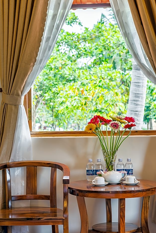 The Garden House Phu Quoc Resort features an on-site restaurant called Tropical Garden Restaurant. The restaurant offers a variety of cuisines such as American, Chinese, Pizza, Seafood, Steakhouse, Vietnamese, Asian, European, and Grill BBQ. The ambiances at the restaurant include Family-Friendly, Traditional, and Romantic.
