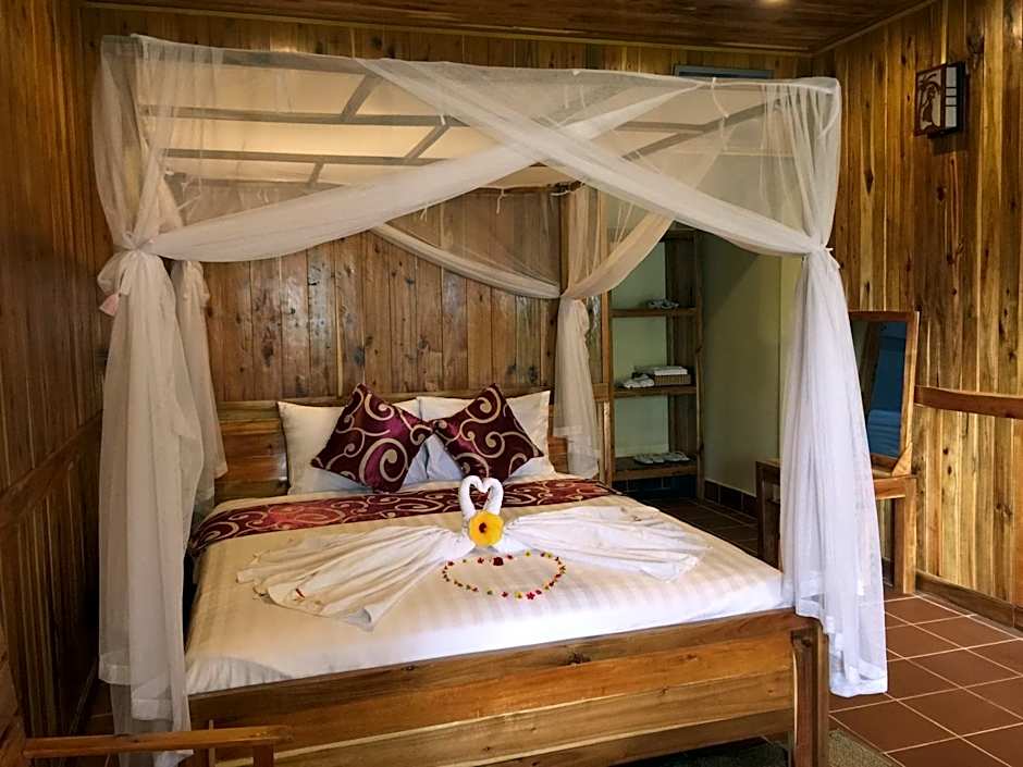 Lovely place, right on the beach. When we took the kayaks out (free from the hotel) you really appreciate how hidden it looks compared to the neighbouring one. In keeping with nature. People are super friendly and helpful. The road to reach the hotel is just a dirt track, so be aware when you make a taxi driver take you there (the hotel offer pick ups for a similar Grab rate). If you make the driver go the longer way, it’s better. Some building work going on a little further away, but no loud noisy drilling (only unloading of building sand), which we didn’t find disturbing. We hired a motorbike from them. Super easy. We had a dinner there one night and it was good. Breakfast is also good, but basic. Room was cleaned everyday and the it was pretty big, only 15m from the sea.