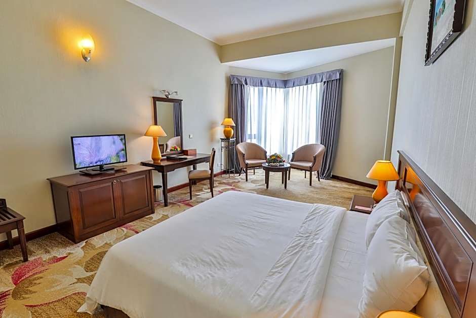 Dive into relaxation with a refreshing dip in the outdoor swimming pool, or unwind at the sauna after a long day of exploration. Enjoy delightful meals at the on-site restaurant and sip cocktails at the bar as you savor the stunning views. With amenities like free WiFi, room service, and private parking, the Saigon Quy Nhon Hotel caters to every traveler's need. And for those looking to blend business with pleasure, we offer a fully-equipped business center and meeting facilities, all while staying in a non-smoking environment.