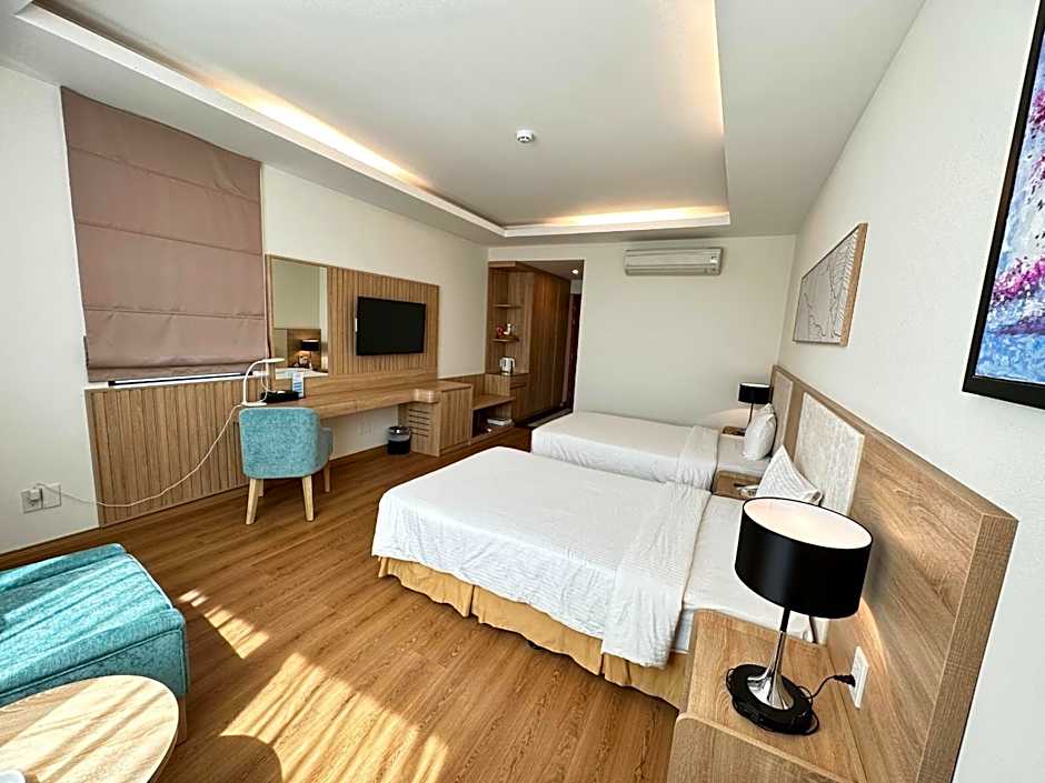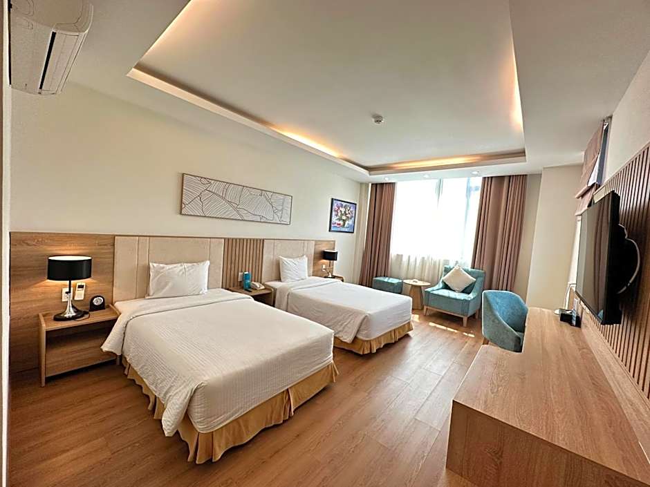 The Muong Thanh Vung Tau Hotel offers a selection of room types including Superior King Room and Deluxe Double Room, both accommodating 2 adults and 1 child. These rooms are non-smoking and feature a queen-size bed. The hotel also has Superior Twin Room with View and Deluxe Twin Room with View, both accommodating 2 adults and 1 child, featuring twin beds. Smoking is not allowed in these rooms as well.