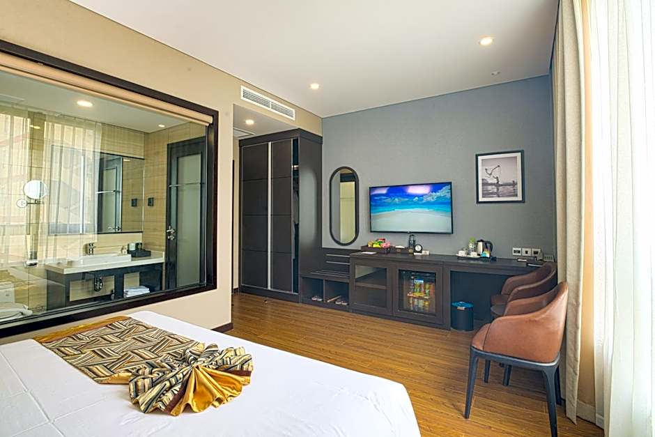 Address: No. 184, Hoang Hoa Tham Street, Ward 2, Vung Tau City, Ba Ria - Vung Tau Province, Vietnam. Amenities include free on-site parking, free Wifi, a restaurant, and room service, along with air conditioning and direct beach access. The hotel also offers soundproof rooms, a 24-hour front desk, non-smoking rooms, an elevator, a bidet, free toiletries, and views from upper floors accessible by elevator. Golf course and kids’ meals are available for an extra charge.