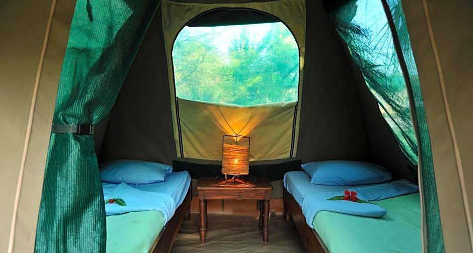 Located at the Adventure Village, these permanent bow tents are equipped with single beds, electric light and a fan. The tents have access to a shared ablution block.