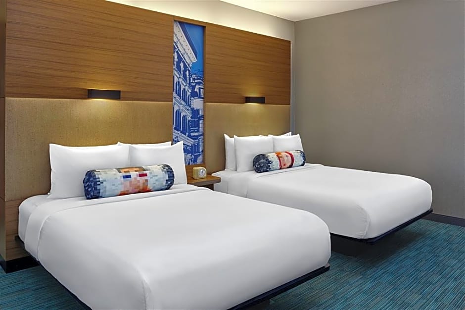 房型從經濟房到可欣賞市景的總統套房一應俱全,並包含 Aloft 品牌的 King(特大床)或 Queen(大床)房型,以及雙 Queen 的配置。範例包括:Aloft, King — 1 張 King 床;Aloft, Queen — 1 張 Queen 床;Aloft, 2 Queen — 2 張 Queen 床。標準客房可容納最多 4 位成人與 3 位兒童,配備一張 King、 一張 Queen 與一張 Double(雙人床)。針對較大團體,Moderate Connecting, Twin 面積為 581 平方英尺,可配置一張 Twin(單人床)與一張沙發床,最多可容納 10 位成人與 6 位兒童。