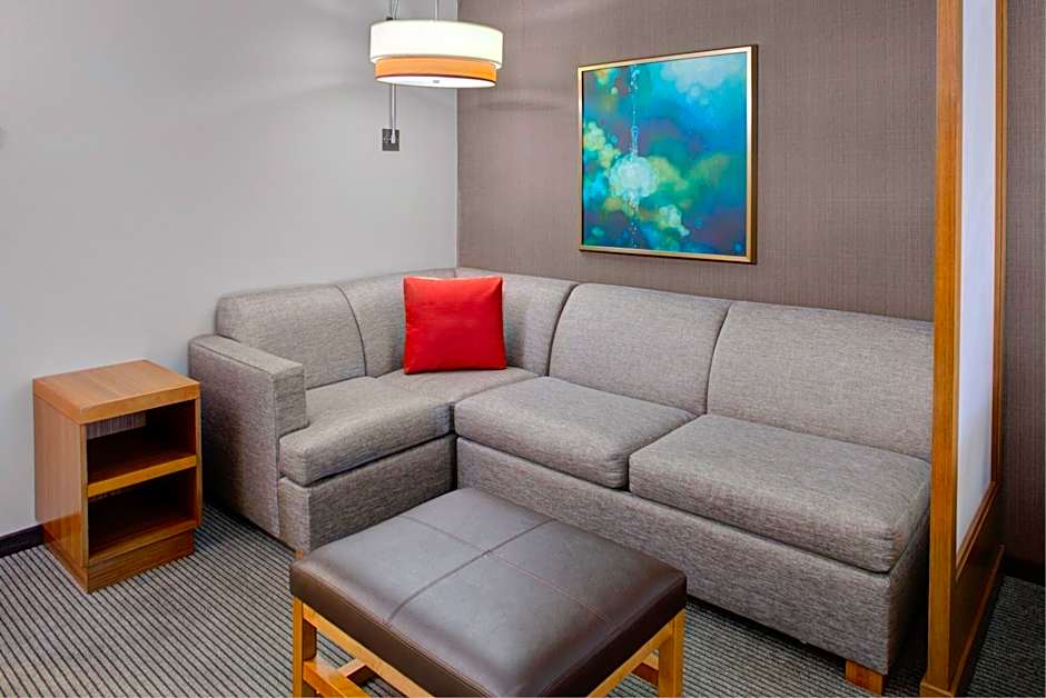 We had a King suite which was quite spacious. The sectional couch was very convenient and comfortable. Our room was quiet. The breakfast was nice with offerings including eggs and breakfast meats. The seating area was spacious.