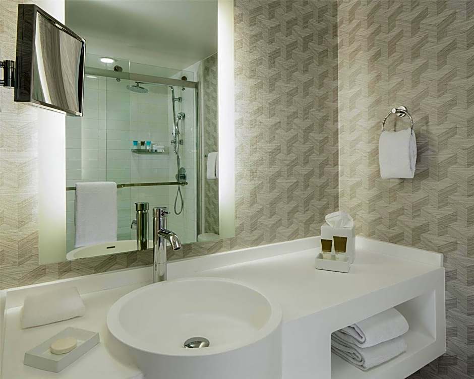 Modern and chill room deco, the bed is thick and comfortable. Super easy to get to from airport terminals, pleasant staff, I like those cocktails at lobby restaurant. Good water pressure of shower. It's a refreshing stay.