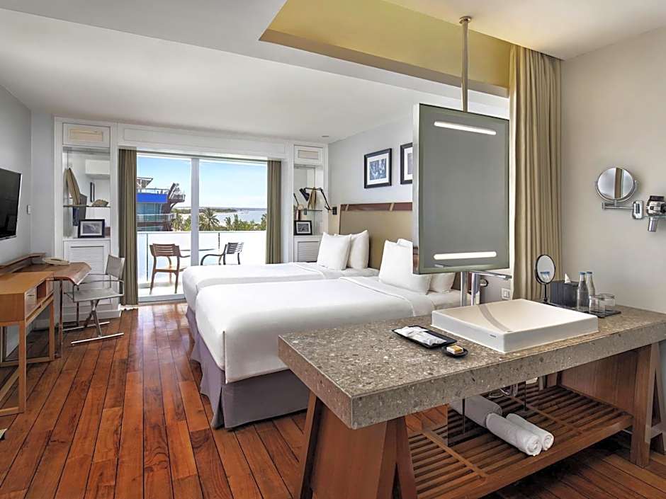 餐飲選擇呼應海濱氛圍:Waves Restaurant 提供美式、印尼料理、在地菜、亞洲菜與國際料理,並以適合家庭的現代風格呈現。Riva Bar and Restaurant 則供應美式、印尼、墨西哥、披薩、海鮮、亞洲與國際料理,氛圍從適合家庭到浪漫情調皆有。兩家餐廳共同締造多元的美食選擇,滿足各種心情與場合。